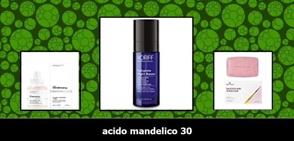 L'acido mandelico 30 è un ingrediente utilizzato in molti prodotti per la cura della pelle grazie alle sue proprietà esfolianti e illuminanti. In particolare, è spesso utilizzato per trattare problemi di acne, macchie scure e rughe.