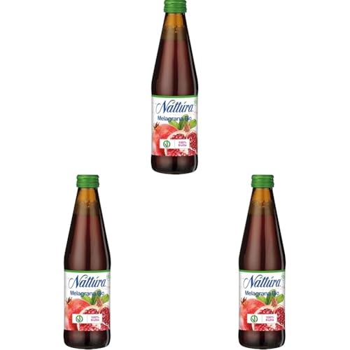 NATTURA Succo di Melograno Bio, Succo di Frutta Senza Zucchero con Melagrana e Mele Biologiche, Ricco di Antiossidanti e Polifenoli, Vegan, 330 ml (Confezione da 3)